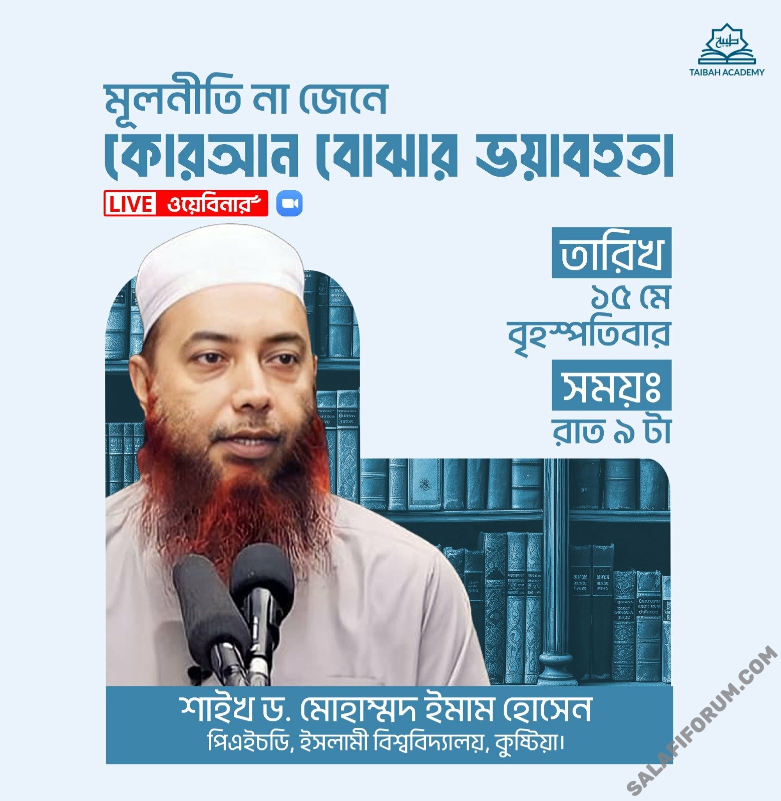 সময়: আগামীকাল, ১৫ মে, বৃহস্পতিবার - রাত ৯টা।